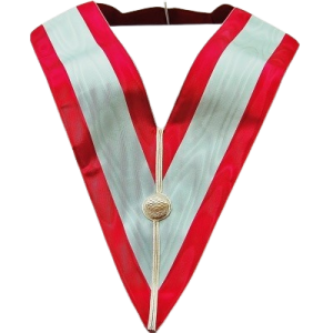 Officers wear a collar four inches in width in light blue and crimson. Their badge of office is suspended therefrom superimposed on a keystone.